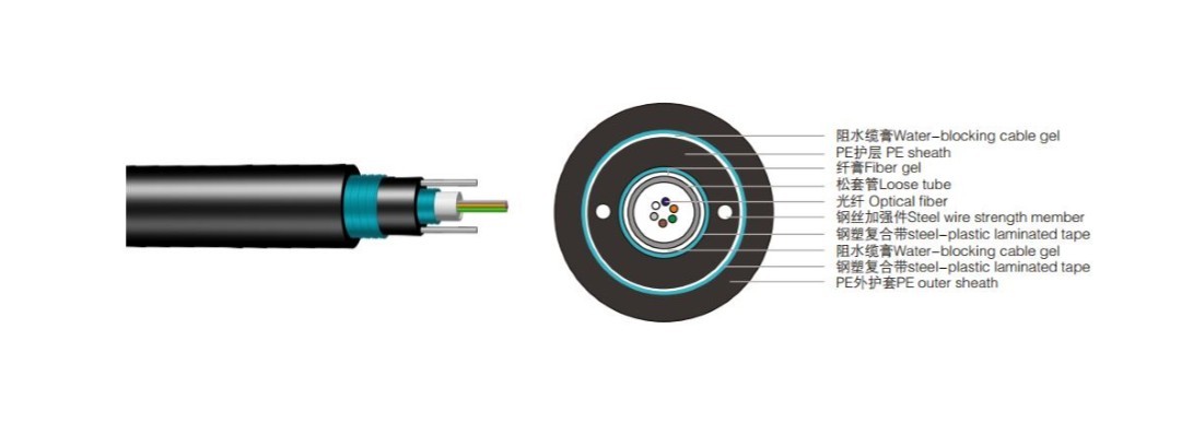 • 双层钢带铠装增加了光缆抗侧压性能及防啮咬性能。