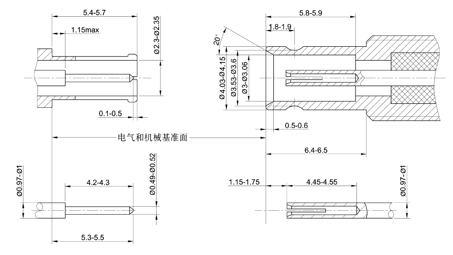 | 特性阻抗 | 50Ω | 内导体 | 插针 | 锡青铜 | 镀金 | |